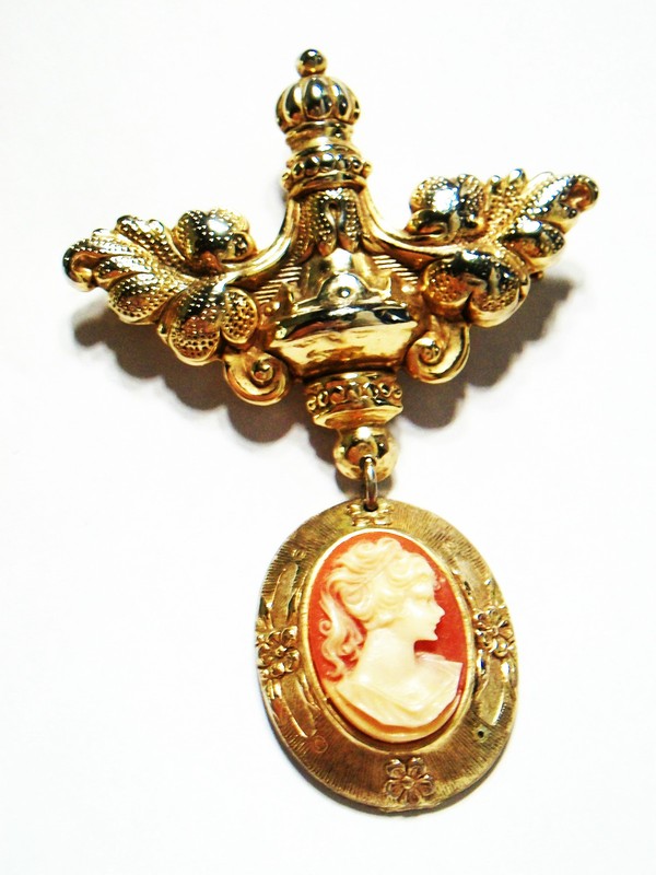 Vintage Gold Tone Renaissance Revival Brooch with Faux Cameo - Circa 1950's
